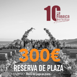 Haz un pago de 300 € y el resto el primer día del Workshop (importe restante 780 €) o reliza el pago total del curso 1080 €.